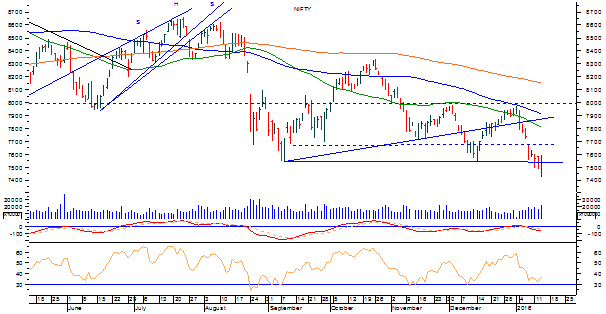 Markets have breached the important pattern support of 7540-7550 levels thrice